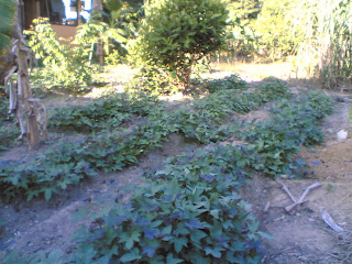 haaaa...ni la ubi kledek or sweet potato...kitorang orang french panggil UBI STAYLOR!~~ni la ubi yang pling byk tanam kt sini pasal senang..buat je batas2 camtu, then tanam sket keratan batang die bbrape inci dlm tanah. tp bahagian pucuk msti hala keatas la. ubi ni la org wat cucur badak...sodap!